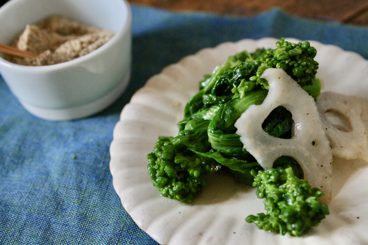 満月の日から菜の花とレンコンの和物(太刀川雅子さん監修)、はまり中。菜の花の苦味とレンコンのシャキシャキっという食感はカパ減らしに◎。トリカトゥもいい仕事してくれています。そして、あっという間に出来上がっておいしいこと。雅子さんのレシピはありがたい。
