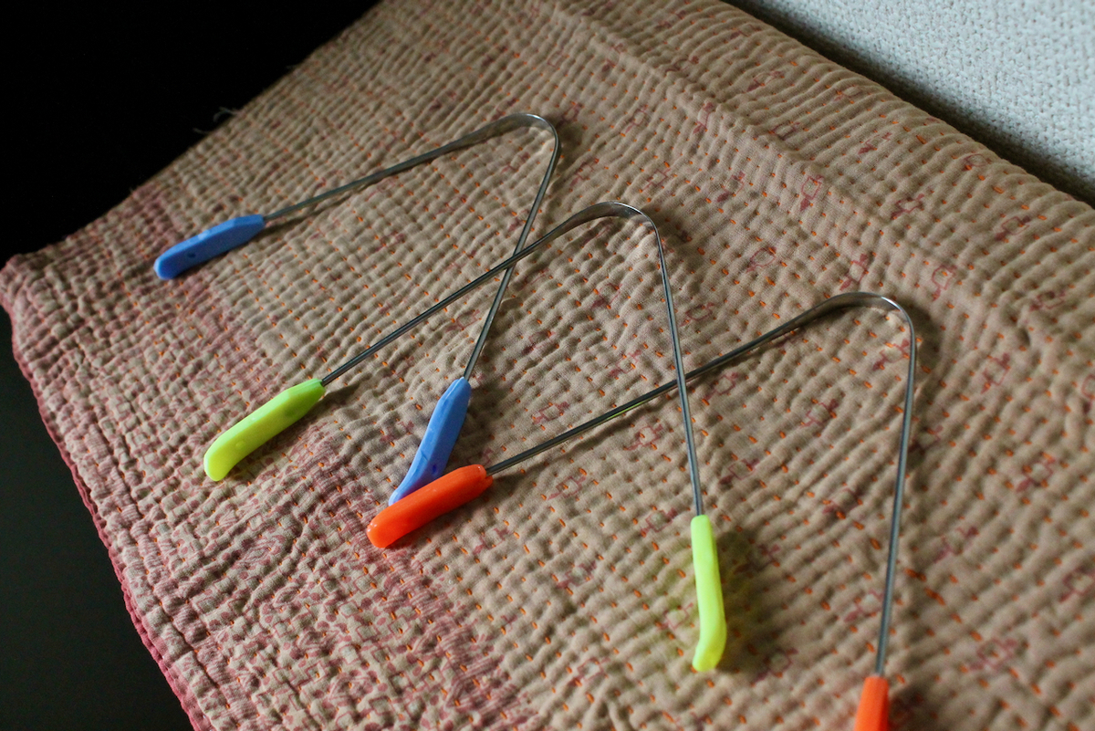 朝の浄化で行う舌磨き。色のついている部分を両手で持って。カーブのところを舌にあてて、優しく手前に引く。舌のお掃除。口腔内をきれいにしてから頂くお白湯は、まーおいしいこと。その後に頂く朝ごはんもさらに、まーおいしいこと。